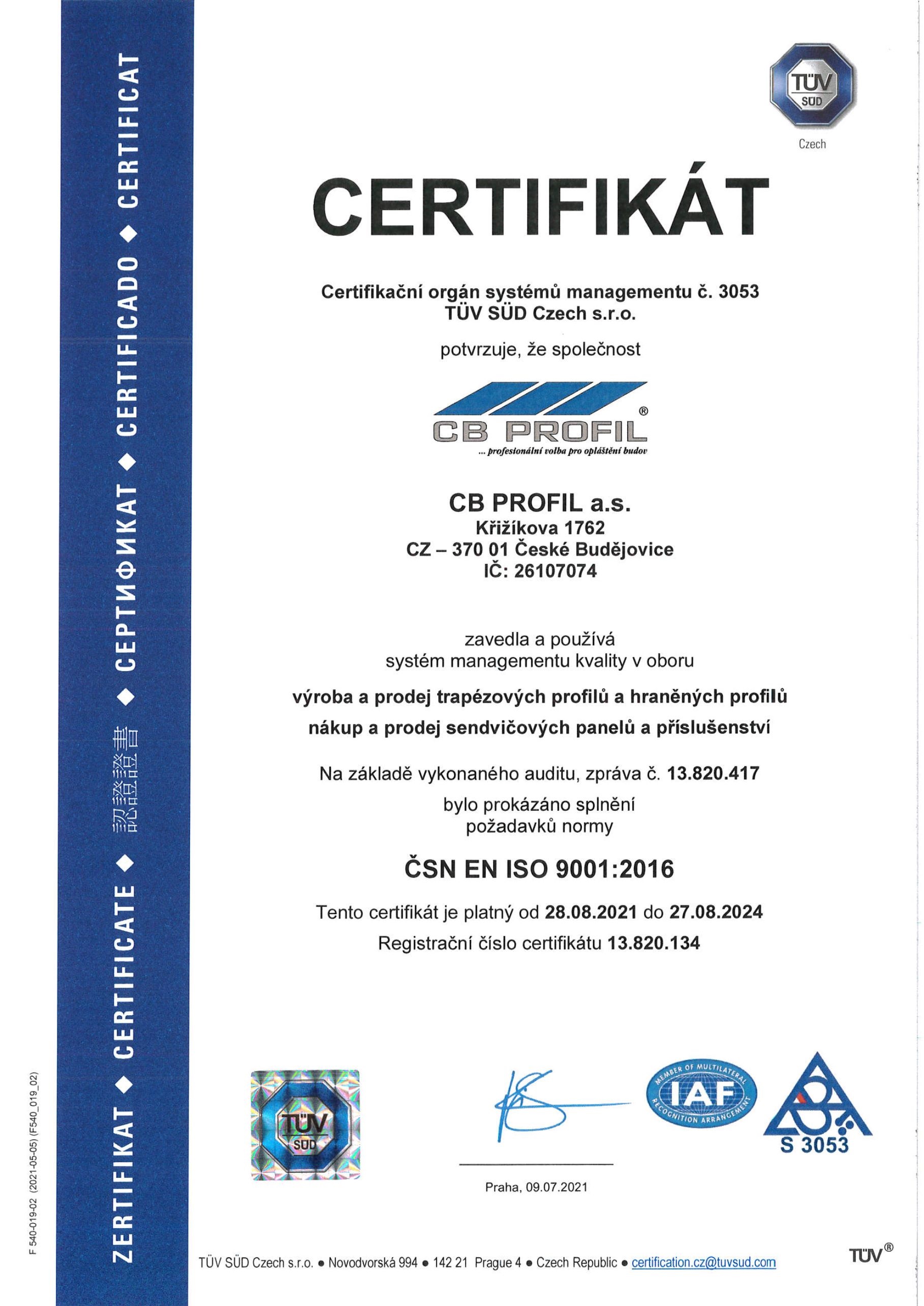 ES Certifikát systému řízení výroby (CE)